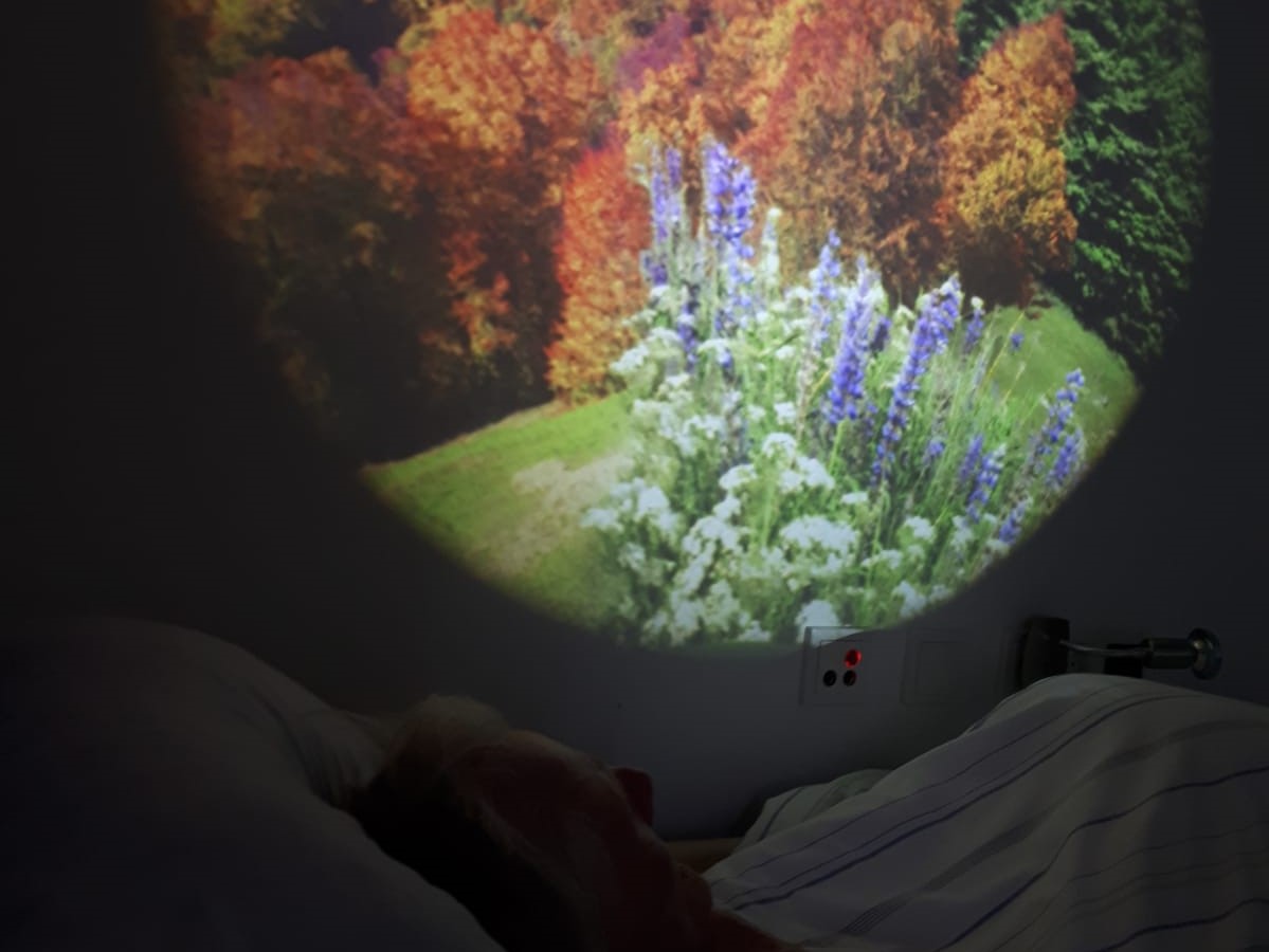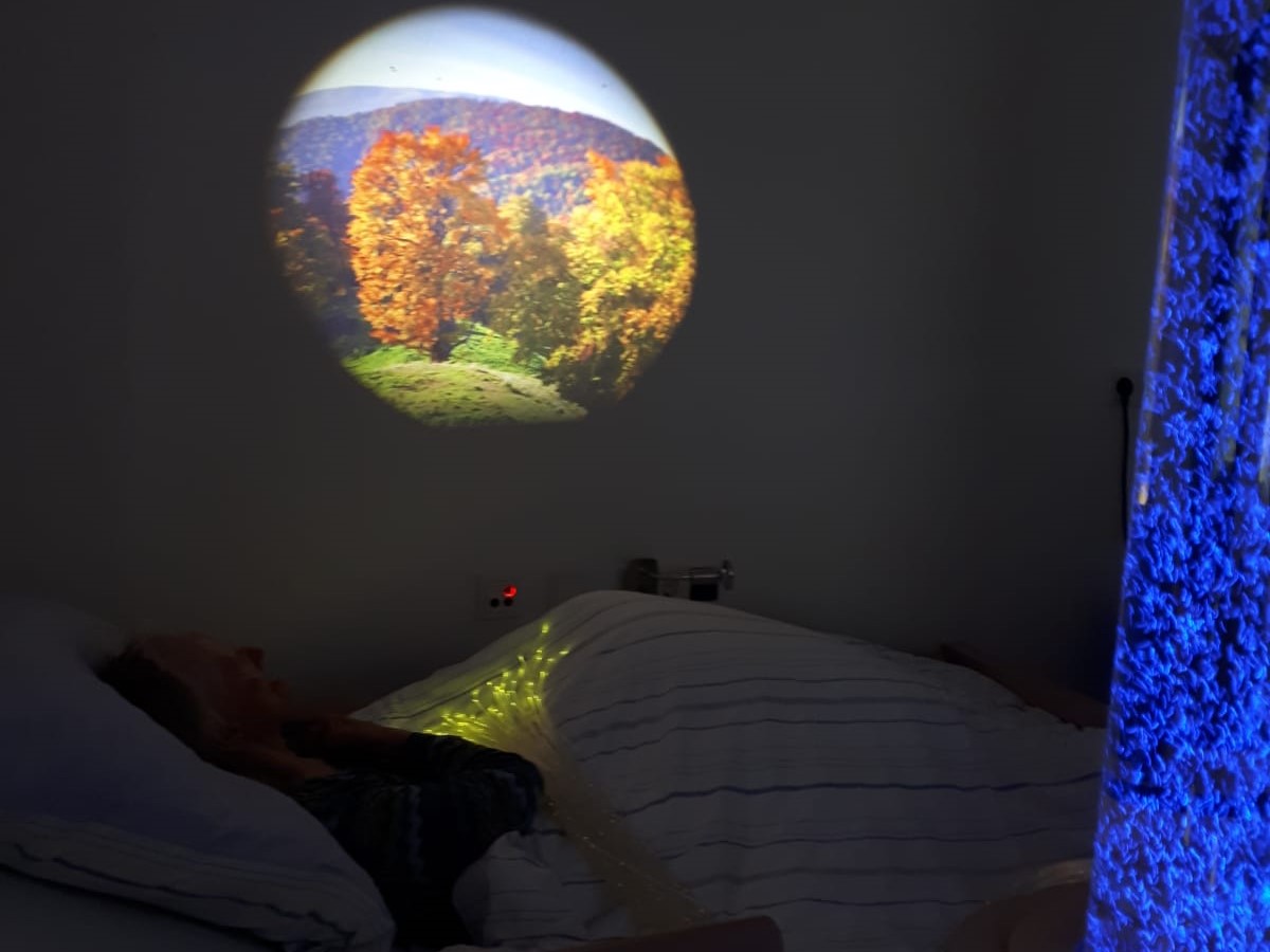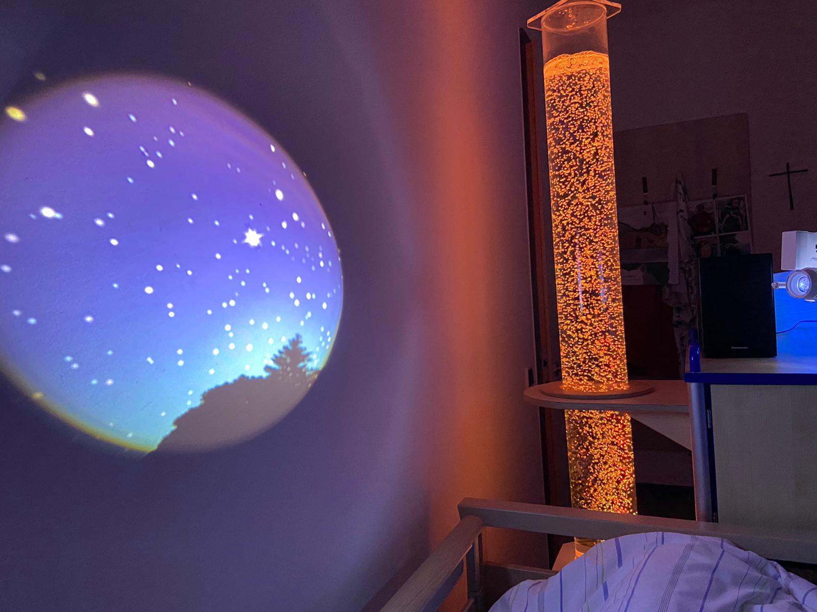 Gemeinsam mit dem Pflegeteam und der Drachenstern-Stiftung als Hauptsponsor freuten wir uns riesig, dass wir an das Haus am Wendelstein in Kolbermoor erstmals einen Snoezelen-Wagen übergeben konnten. Dieser mobile Sinneswagen kann in die Zimmer der bettlägerigen Heimbewohner_innen gefahren werden. Mit Lichtquellen, Projektoren und Blasensäule werden bunte Lichtreflexe an Zimmerwand und -decke geworfen. Im Wagen sind zusätzlich unterschiedliche Materialien für den Tastsinn sowie Musik untergebracht. All dies dient künftig der sensitiven Wahrnehmung und Entspannung.