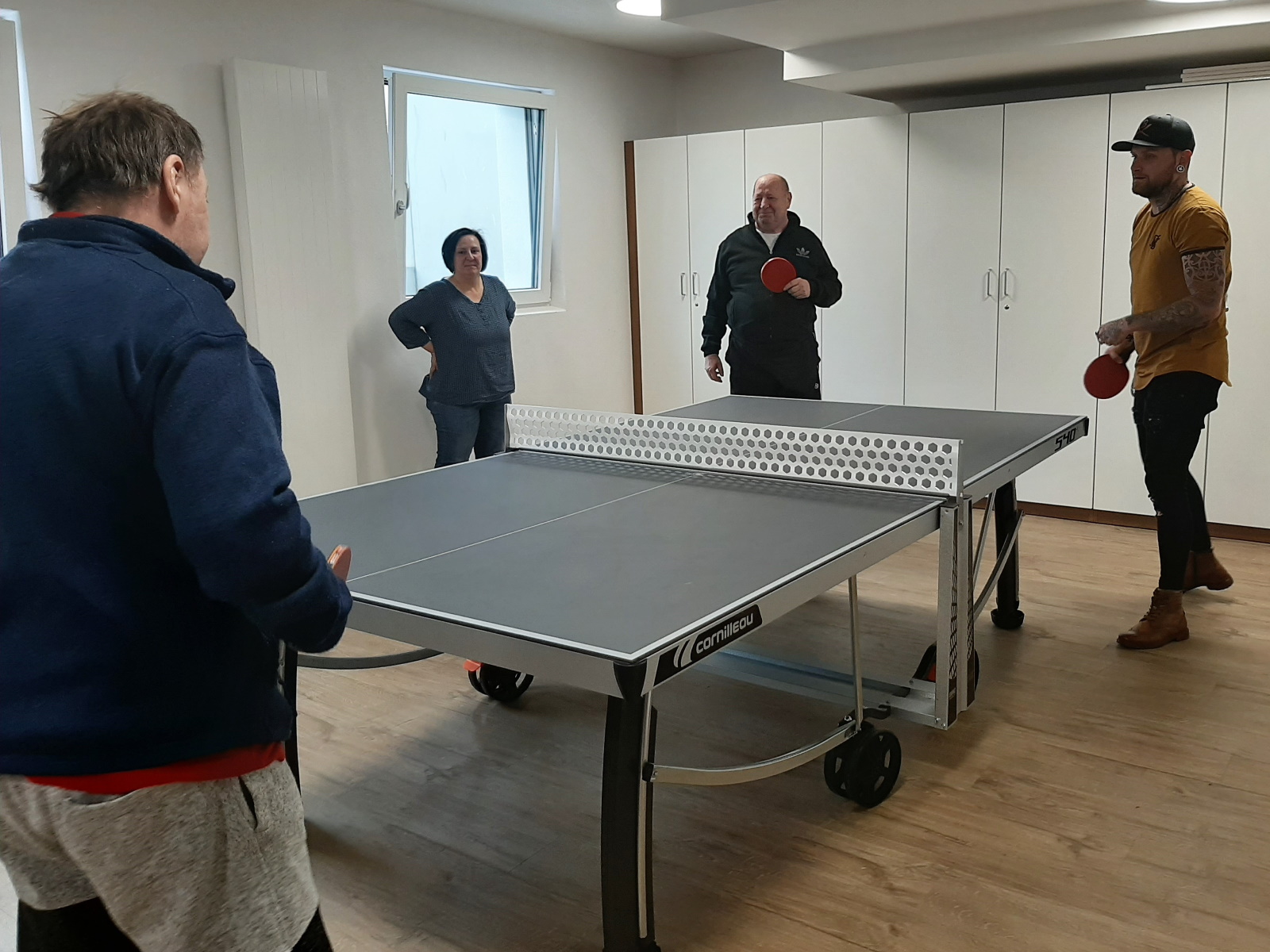 An Corona hatte bei der Übergabe Anfang März 2020 noch niemand gedacht; doch in der Corona-Isolation ohne jeglichen Besuch, bot und bietet die Tischtennisplatte eine echte Abwechslung.